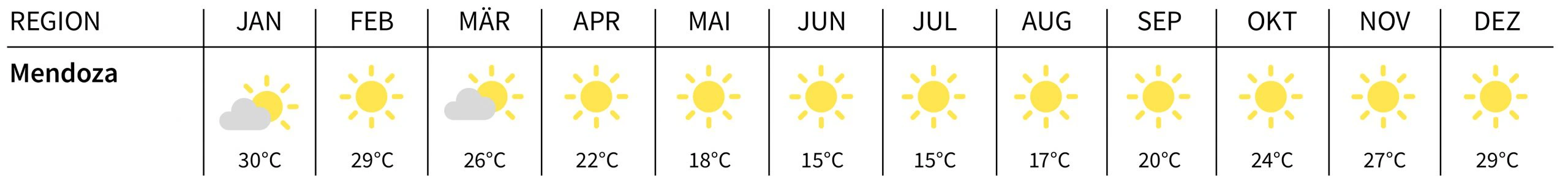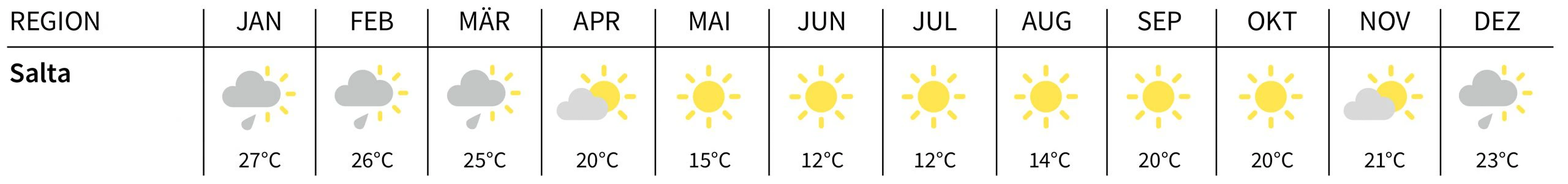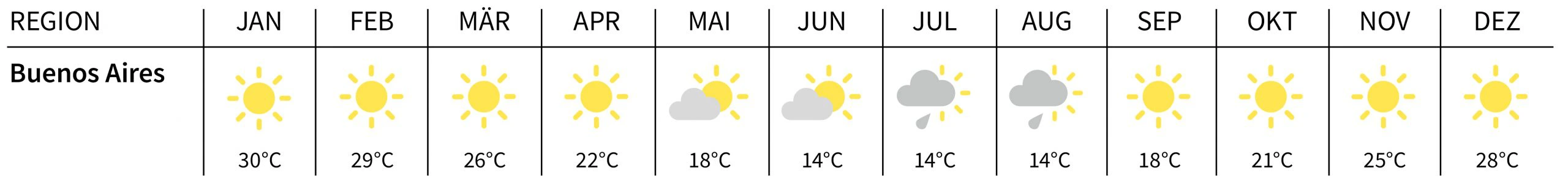 Da Argentinien auf der Südhalbkugel liegt, sind die Jahreszeiten hier entgegengesetzt zu unseren in Europa. Bitte beachten Sie dies bei der Planung Ihrer Reise nach Argentinien.