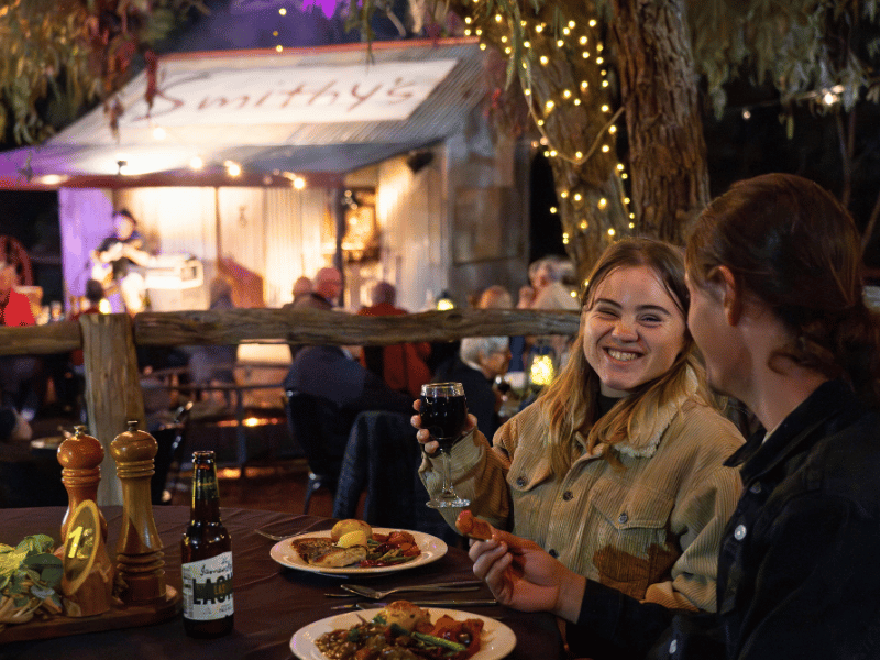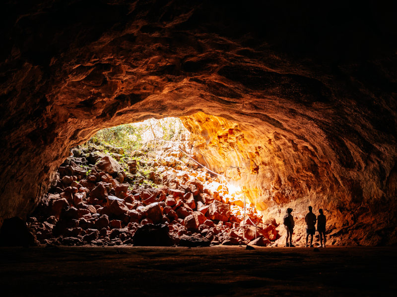 Bei einer geführten Tour erkunden Sie die faszinierenden Lavaröhren – kilometerlange Tunnel, die vom heißen Magma einst in den Fels gebrannt wurden. Abends genießen Sie ein rustikales Dinner unter funkelndem Sternenhimmel, begleitet vom Zirpen der Grillen und dem Ruf der Kookaburras.
