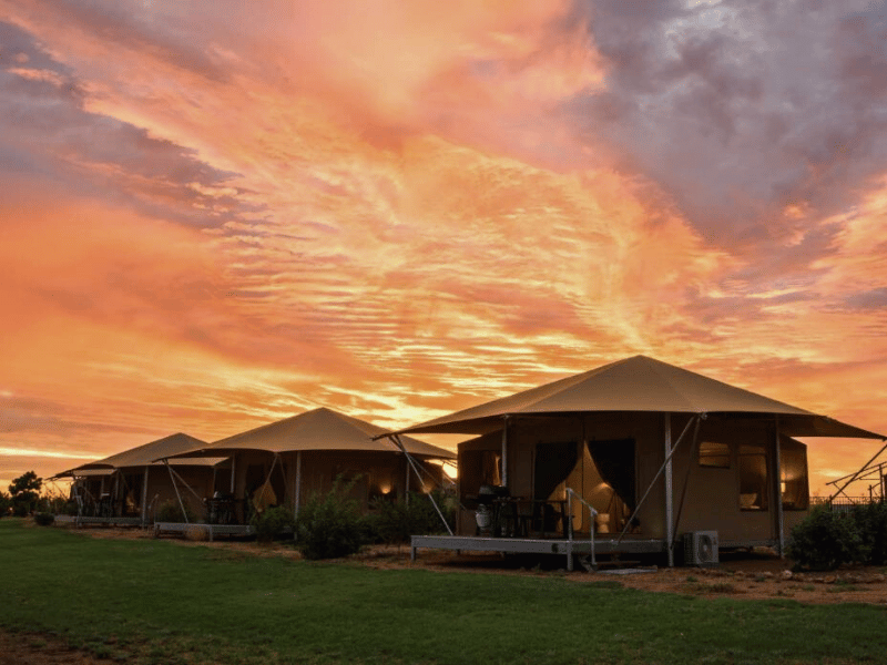 Anschließend fahren Sie noch eine gute Stunde zu Ihrem Outback Retreat, wo Sie in liebevoll gestalteten Glamping-Zelten übernachten. Kaufen Sie unterwegs ein paar Dinge fürs Frühstück. Ihre Unterkunft lädt ein, den Tag langsam und entspannt zu starten. Sie können die Camp-Küche für ein ausgiebiges Frühstück nutzen.