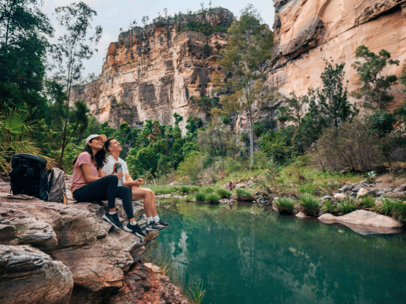 Unternehmen Sie eine Wanderung in die beeindruckende Carnarvon Gorge – die bis zu 200 Meter hohen Wände leuchten je nach Licht in Orange- und Rottönen. Entlang des Weges entdecken Sie uralte Felsmalereien der Ureinwohner, klare Wasserstellen und vielleicht sogar scheue Felsenkängurus.