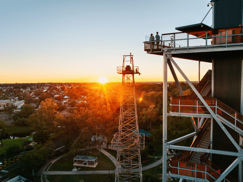 Besuchen Sie das moderne Waltzing Matilda Centre . Abends lohnt sich ein Spaziergang durch die ruhigen Straßen – oft glüht der Himmel über Winton in intensivem Orange.