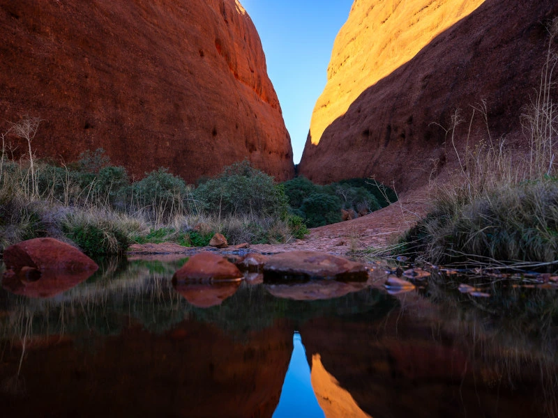 Früh am Morgen beginnt Ihr Tag mit einer Sunrise Tour zu den beeindruckenden Felsformationen von Kata Tjuta, auch bekannt als die Olgas. Diese Tour ermöglicht es Ihnen, den Sonnenaufgang in einer der faszinierendsten Landschaften Australiens zu erleben. Die roten Felsen leuchten in den ersten Strahlen der Sonne, und Sie erfahren mehr über die geologische und kulturelle Bedeutung dieses Ortes.