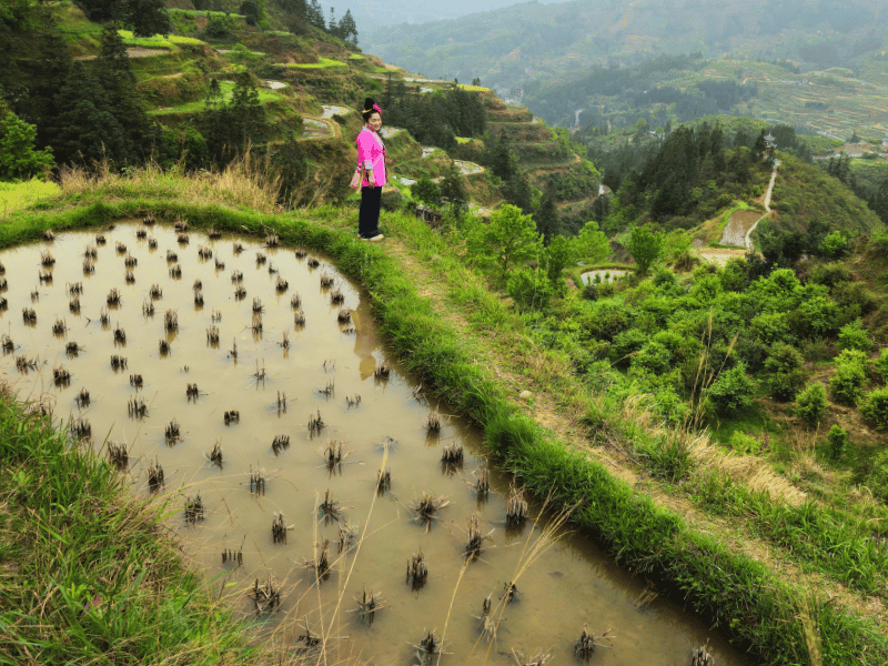 Durch die Reisterrassen von Tang'an nach Zhaoxing wandern