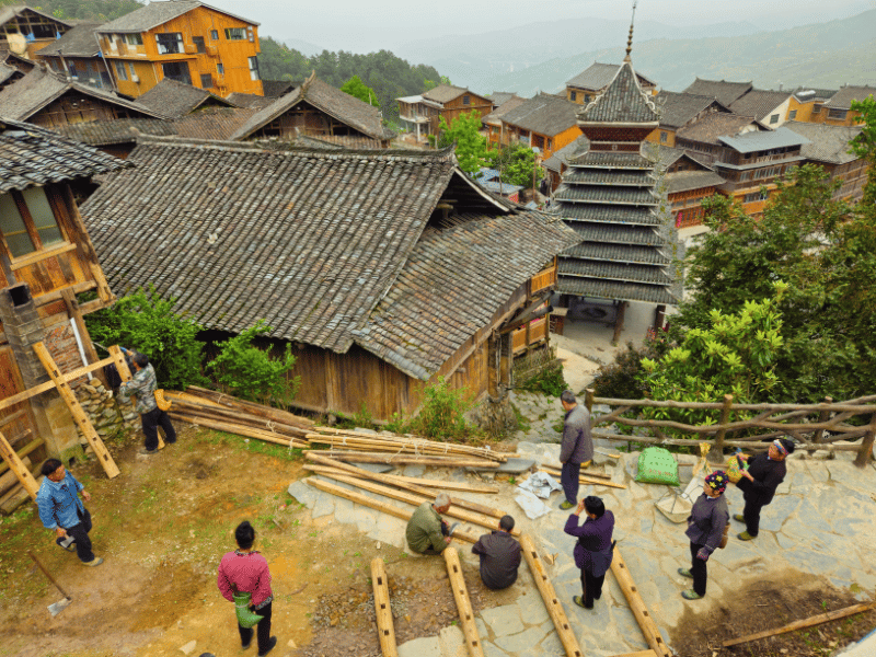 Im Laufe des Tages erreichen Sie Zhaoxing – je nach Ihrer vorherigen Station planen wir für die Anreise einen Privattransfer oder den Hochgeschwindigkeitszug ein. Zhaoxing ist die Heimat der Dong-Minderheit, die als die besten Holzhandwerker Chinas bekannt sind. Sie stellen unter anderem die typischen Trommeltürme und Wind- und Regenbrücken her – alle ganz ohne Nägel. Bei Ihrer Entdeckungstour können Sie diese besondere Architektur bewundern. Daneben ist Zhaoxing auch für die Indigo Färberei bekannt. Oft hängen lange, blau gefärbte Stoffbahnen zum Trocknen von den Balkonen. Lust, es selbst zu versuchen? Im Kulturzentrum nahe des Ortseingangs werden Workshops angeboten, an denen Sie spontan teilnehmen können.