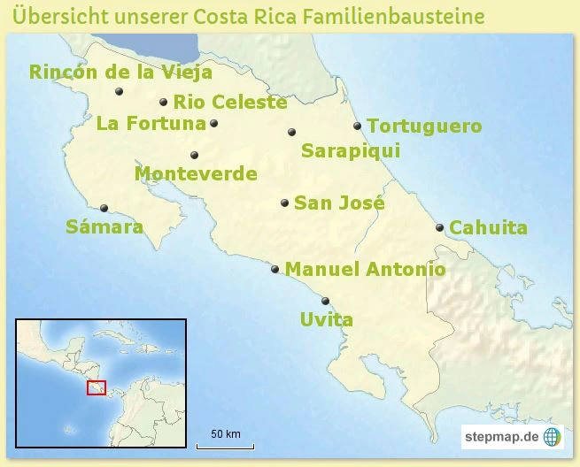 Sie können auch eine unserer individuellen Rundreisen wählen, bei denen wir die Bausteine bereits zu einer logischen Route zusammengestellt haben. Viel Spaß beim Planen Ihrer Costa Rica Familienreisen!
