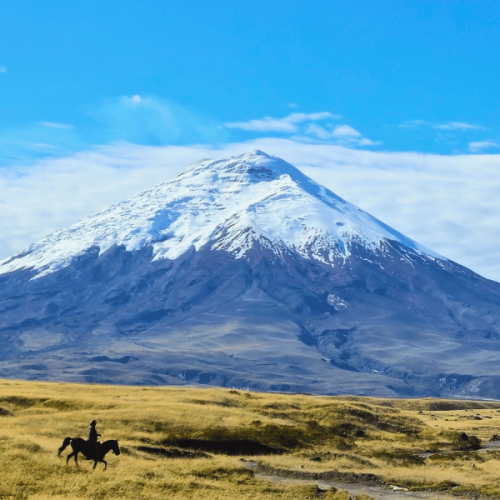 Nachdem Sie den Cotopaxi am Vortag aus der Ferne gesehen haben, geht es heute hinauf bis fast an den Gipfel. Der Vormittag eignet sich dafür besonders gut, denn der Himmel ist oft klar und Sie starten ausgeruht in den Tag. Außerdem sind zu dieser Zeit noch weniger Reisende im Cotopaxi‑Nationalpark unterwegs.