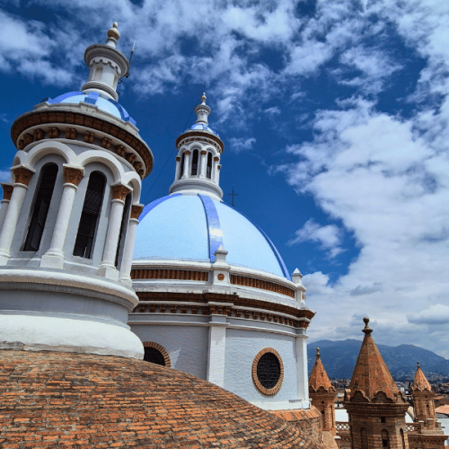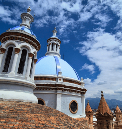 Heute reisen Sie entweder mit dem Bus oder mit einem Privattransfer nach Cuenca. Die Kolonialstadt hat einen fast mediterranen Charakter: Pastellfarbene Häuser mit gusseisernen Balkonen und Gebäude mit überwachsenen Patios säumen die Straßen. Die Hotels erkennen Sie an den ecuadorianischen Flaggen, die am Eingang hängen – ein fröhlicher Anblick. Auch Sie übernachten ganz stilgemäß in einem gemütlichen, leicht rustikalen Kolonialhotel mit typischem Innenhof im historischen Zentrum. Nach dem Einchecken können Sie durch die bezaubernden Gassen der Altstadt schlendern. Der San‑Francisco‑Platz und die Kathedrale de la Inmaculada Concepción mit ihren markanten blauen Kuppeln liegen gleich um die Ecke.
