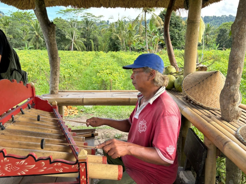 Im kühleren, ruhigen Sidemen angekommen, spürten wir sofort eine wohltuende Entschleunigung. Unser Guide wanderte mit uns ca. 2 Stunden durch die üppige Landschaft. Wir liefen durch Plantagen, erfuhren Spannendes über die lokale Landwirtschaft, alte Traditionen und wie die Fruchtbarkeit des Bodens erhalten wird. Am Wegesrand begegneten wir einem musizierenden Einheimischen, bevor wir zum Hotel zurückkehrten.