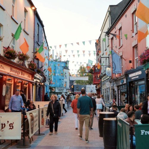 Galway, diese Stadt an der Westküste, wirkt dank ihrer engen, von Musik erfüllten Gassen, farbenfrohen Fassaden und unzähligen Pubs an jeder Ecke eher wie ein großes Dorf als eine Großstadt. Tagsüber bevölkern Straßenmusiker die Straßen mit Geige oder Gitarre, Kinder tanzen durch die Gassen und Einheimische genießen ihren Kaffee auf Bänken im Freien. Abends, wenn Sie einen der Pubs betreten, scheint sich die ganze Stadt um die Musik zu drehen.