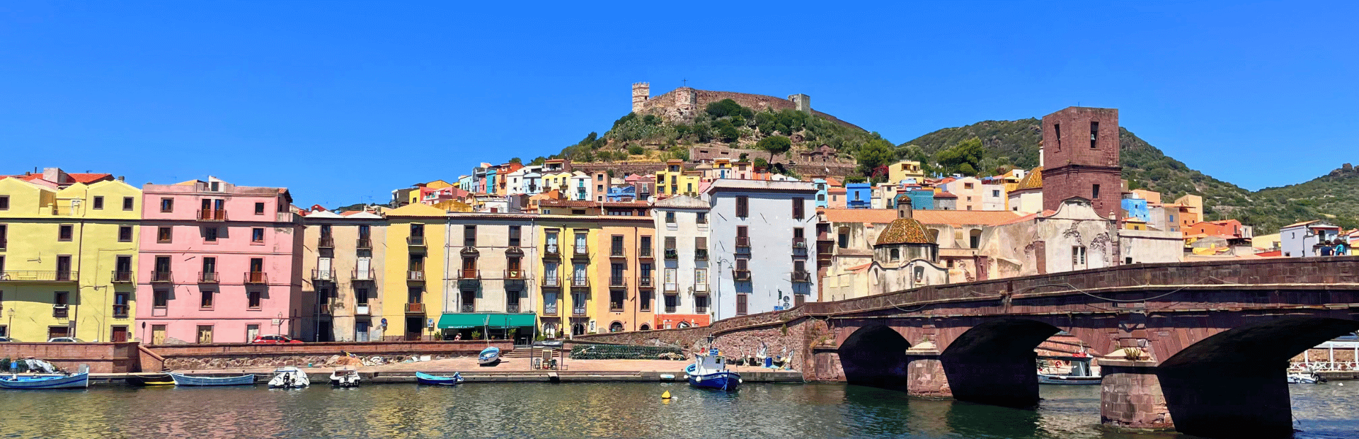 Neben den Stränden und Bergpanoramen waren die kleinen Städte unser persönliches Highlight auf der Sardinien Familienreise. Auf dem Weg vom Norden in den Westen der Insel haben wir einen Zwischenstopp im malerischen Bosa eingelegt und sind ein wenig durch die gemütlichen Gassen geschlendert. Der Blick auf die am Hang gebauten, pastellfarbenen Häuser und die Fischerboote auf dem Fluss Temo bietet ein ganz besonderes Flair.