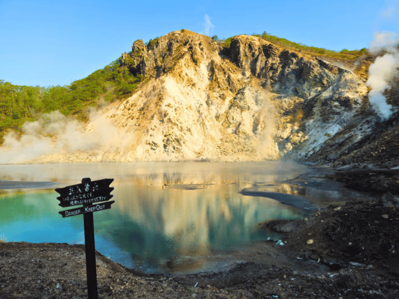 Noboribetsu ist das bekannteste Onsengebiet Hokkaidos und beeindruckt vor allem durch seine spektakuläre Natur. Ein Spaziergang durch das „Höllental“ (Jigokudani) mit dampfenden Quellen und bizarren Felsformationen ist ein absolutes Highlight. Von dort führen Wege zu idyllischen Seen und weiteren Naturpfaden, die zum Entdecken einladen.