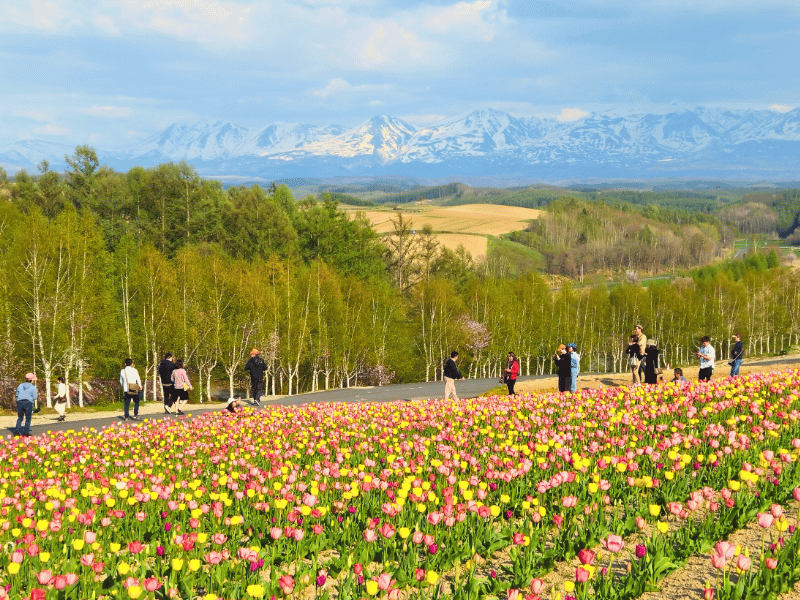 Die Region zwischen Furano und Biei ist auch bekannt für ihre prachtvollen Blumenfelder. Sanfte Hügel mit den Gipfeln des Daisetsuzan Gebirges im Hintergrund prägen die Landschaft. Von Frühling bis Herbst blüht es hier. Es gibt spezielle Blumenfarmen, wo diese herrlichen Blumenteppiche mit Liebe zum Detail geschaffen werden. Folgen Sie zum Beispiel der Patchwork Road, um die Landschaft zu genießen.