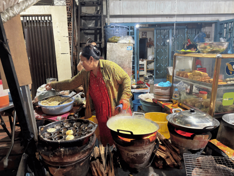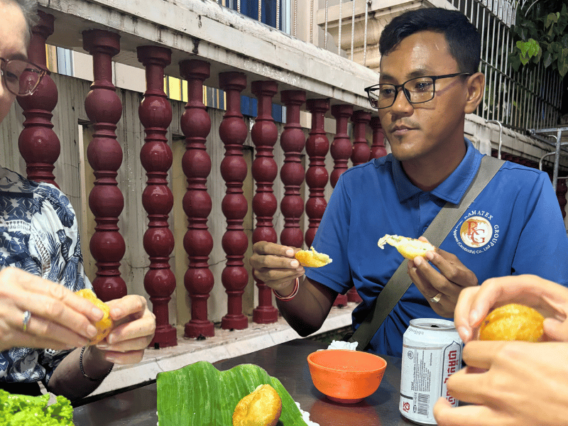 Am Abend begeben Sie sich mit einem lokalen Guide auf eine kulinarische Entdeckungstour durch Phnom Penh. Erkunden Sie lebhafte Streetfood-Märkte, versteckte Garküchen und sogar eine geheime Cocktailbar. An sieben Stopps probieren Sie mehr als 20 verschiedene Gerichte und Getränke – begleitet von unbegrenztem Bier oder Softdrinks. Zum Abschluss genießen Sie einen kreativen Cocktail in einer stilvollen Bar, bevor es zurück ins Hotel geht.