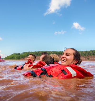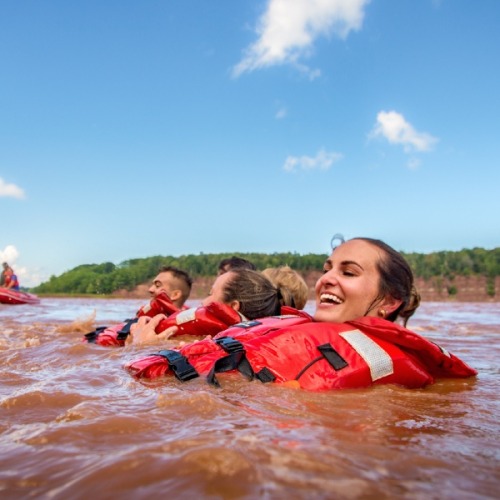 Staunen Sie, wie ein kleiner ruhiger Fluss vor Ihren Augen die Richtung umkehrt und sich in einen turbulenten Strom verwandelt. Das Wildwasser-Rafting-Abenteuer beginnt und Ihr Boot meistert die Achterbahn-Stromschnellen entlang der einlaufenden Flut. Gewaschen mit den Wassern Nova Scotias, kehren Sie zum Ausgangspunkt zurück.
