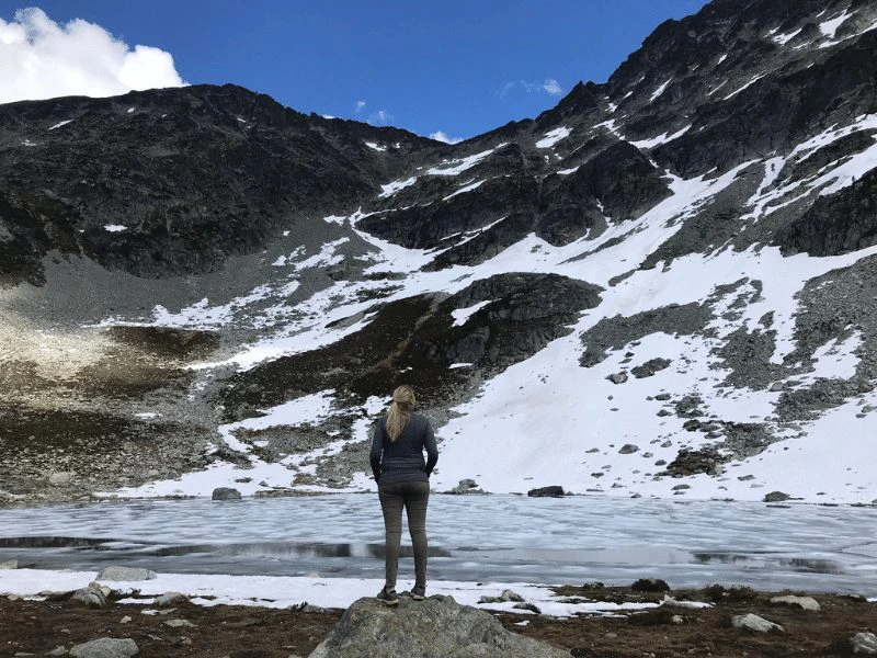 Wir waren wirklich begeistert von der noch intakten Natur und der Ruhe. Vor uns eröffnete sich eine schöne Sicht über das bewaldete Fitzsimmons Valley auf den Whistler Mountain. Highlight der Route war der Blackcomb Gletscher, welcher erschreckenderweise in den letzten Jahren stark geschmolzen ist. Dies ist ein Paradebeispiel für den rasanten Klimawandel.