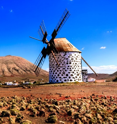 Im Landesinneren von Fuerteventura fühlt es sich an, als wären Sie in einem anderen Land gelandet. Keine Sonnenliegen, sondern staubige Wege, alte Windmühlen und Dörfer, in denen der Dorfplatz noch den Rhythmus bestimmt. Sie wandern zwischen Kakteen und vulkanischem Gestein, und ab und zu begegnet Ihnen eine Ziege auf der Straße. Die Ausblicke sind weit, die Farben erdig – und am Abend sehen Sie mehr Sterne, als Sie sich vorstellen können. Gegessen wird lokal: probieren Sie zum Beispiel das typische kanarische Kartoffelgericht papas arrugadas und dazu ein Glas Wein. Für die kommenden Nächte haben wir eine typische Unterkunft mit Pool für Sie ausgewählt.