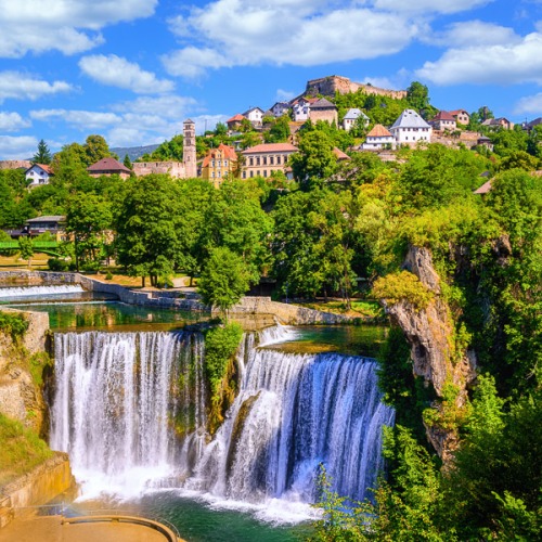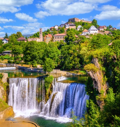 Von Sarajevo erreichen Sie Jajce in einer halbtägigen Fahrt. Sie übernachten am Ufer der Pliva-Seen, in einem kleinen Gästehaus mit Blick auf das Wasser. Entlang des Seeufers prägen hölzerne Wassermühlen das Bild, und das klare Wasser lädt zum Schwimmen ein. Jajce selbst überrascht mit einem lebendigen Zentrum, einer eindrucksvollen Zitadelle, verwinkelten Gassen und Terrassen, von denen aus sich bosnische Spezialitäten mit Blick auf den berühmten Wasserfall genießen lassen.