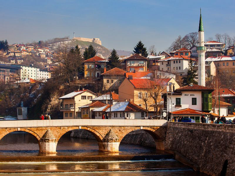 Egal, ob Sie aus Mostar oder Jajce anreisen, die Strecke nach Sarajevo ist spektakulär: kurvenreich durch die Berge, bis sich die Stadt plötzlich in einem weiten Tal öffnet. Sie übernachten in einem Stadthotel in fußläufiger Nähe zum alten Zentrum, wo Basarstraßen, Moscheen und Kaffeehäuser das Bild prägen. In Bascarsija, dem osmanischen Viertel mit Kupferschmieden und Grillrestaurants, lässt sich die Atmosphäre der Stadt besonders gut erleben. Zum Abendessen bieten sich lokale Restaurants mit Innenhof und herzhafter bosnischer Küche an, oft ergänzt durch Ajvar als Beilage. Besonders empfehlen können wir das beliebte Restaurant Dveri.