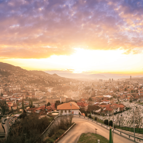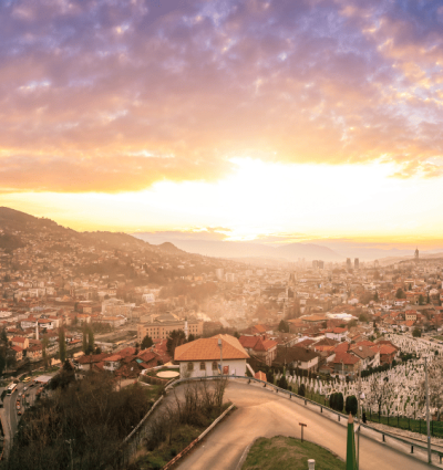 Egal, ob Sie aus Mostar oder Jajce anreisen, die Strecke nach Sarajevo ist spektakulär: kurvenreich durch die Berge, bis sich die Stadt plötzlich in einem weiten Tal öffnet. Sie übernachten in einem Stadthotel in fußläufiger Nähe zum alten Zentrum, wo Basarstraßen, Moscheen und Kaffeehäuser das Bild prägen. In Bascarsija, dem osmanischen Viertel mit Kupferschmieden und Grillrestaurants, lässt sich die Atmosphäre der Stadt besonders gut erleben. Zum Abendessen bieten sich lokale Restaurants mit Innenhof und herzhafter bosnischer Küche an, oft ergänzt durch Ajvar als Beilage. Besonders empfehlen können wir das beliebte Restaurant Dveri.