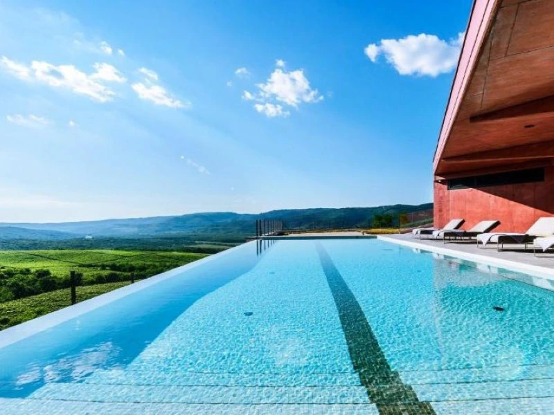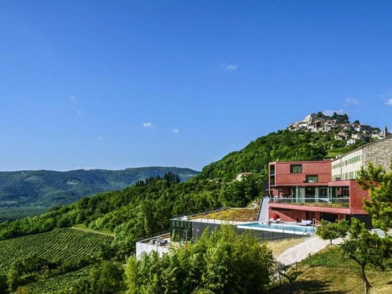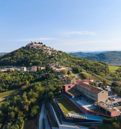Wir haben ein modernes Hotel – vom Infinity-Pool haben Sie einen Blick aufs Meer. Genießen Sie die Ruhe nach einem Tag voller Besichtigungen und lassen Sie sich verwöhnen. Es gibt einen kleinen Wellnessbereich, eine Weinbar und ein Restaurant mit guten lokalen Gerichten. Pula ist eine 30-minütige Fahrt, Rovinj 40 Minuten entfernt.