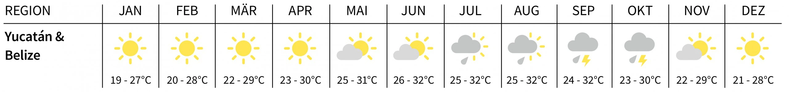 Unsere Reisespezialisten empfehlen die Monate Mai bis August ebenfalls als gute Reisezeit für Mexiko.