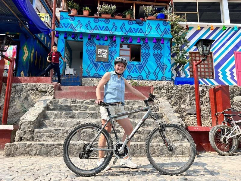 Sorgen Sie für ein ausgiebiges Frühstück, denn heute wird ein aktiver Tag. In Panajachel stehen robuste Mountainbikes für Sie bereit. Zusammen mit Ihrem Guide machen Sie sich auf den Weg. Die Route schlängelt sich entlang des Sees, mit steilen Anstiegen und atemberaubenden Aussichten. Nach 5 km erreichen Sie Santa Catalina Palopó, wo blaue Häuser mit bunten Details die Straßen schmücken. Anschließend radeln Sie weiter nach San Antonio Palopó. In einer Weberei lernen Sie traditionelle Webtechniken kennen und besuchen eine kleine Schokoladenfabrik. Der 10 km lange Rückweg bietet immer wieder neue Ausblicke auf den See.