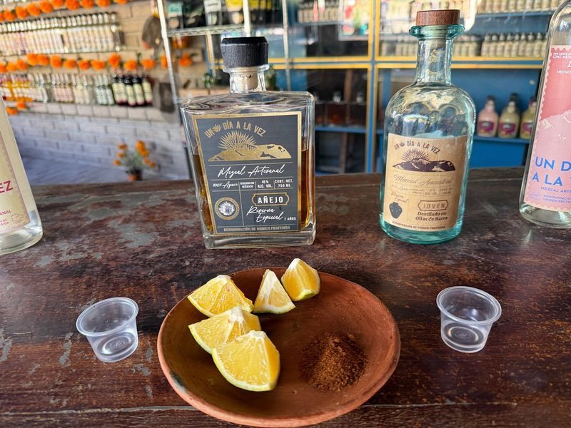 Nach dem Rundgang probieren Sie verschiedene Mezcalsorten und erfahren, wie unterschiedlich die Aromen je nach Sorte und Herstellungsweise sind. Im Anschluss können Sie vor Ort oder in einem nahegelegenen Dorf in einem kleinen Restaurant zu Mittag essen (nicht im Preis inbegriffen). Bevor Sie zurück nach Oaxaca fahren, bleibt Zeit, den Blick über die Landschaft schweifen zu lassen oder ein Fläschchen Mezcal als Erinnerung mit nach Hause zu nehmen.