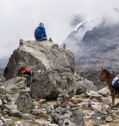 Heute beginnt der härteste Tag, aber auch schönste Tag Ihres Trekkings. Nach einem frühen Frühstück wandern Sie weiter bergauf zum Salkantay-Pass und befinden Sie sich auf dem höchsten Punkt des Trekkings (4600m). Von hier sehen Sie den imposanten Salkantay Gletscher. Anschließend geht es bergab durch eine sich schnell verändernde Landschaft: Kahle Felsen weichen grünen Tälern und Wasserfällen. Am Ende des Tages erreichen Sie Collpapampa, ein Dorf auf etwa 2.900 Metern Höhe. Hier übernachten Sie in einer Kuppel inmitten tropischer Wälder, wo die Luft feucht und warm ist und Sie nachts die Grillen zirpen hören.