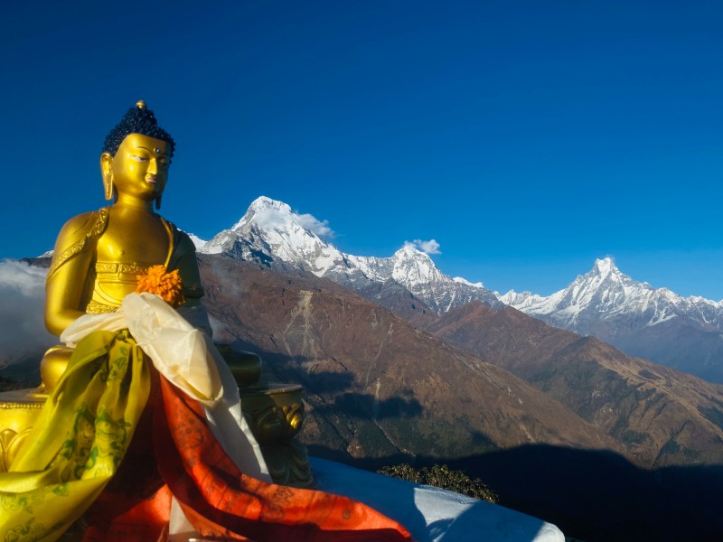 Bei dieser Rundreise tauchen Sie ein in das spirituelle Herz des Himalayas. Der November ist die beste Zeit für klare Sicht auf die schneebedeckten Achttausender und für Wanderungen durch die terrassierten Berglandschaften. Zwischen den goldenen Pagoden im Kathmandutal und der friedlichen Stille des Pokhara-Sees finden Sie Ihre ganz persönliche Balance aus Abenteuer und innerer Einkehr. Eine Begegnung mit einer Kultur, die tief verwurzelt ist und Besucher mit einer unvergleichlichen Herzlichkeit empfängt.