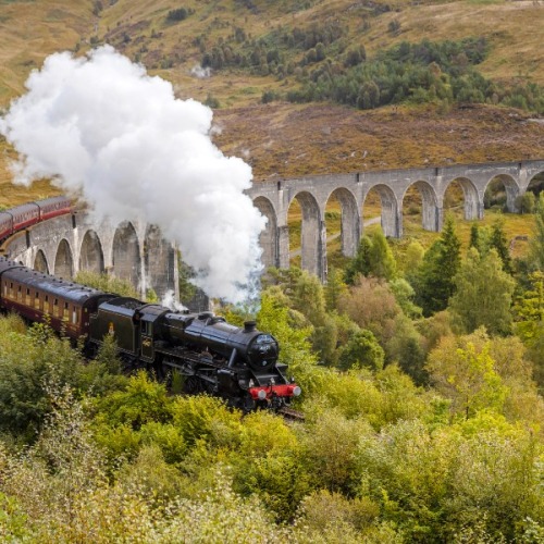 Für ein Erlebnis wie im Film organisieren wir gerne eine Fahrt mit dem berühmten Dampfzug „Hogwarts Express“. Dieser magische Zug fährt von Fort William ab und bringt Sie über das legendäre Glenfinnan-Viadukt zum Fischerdorf Mallaig. Unterwegs genießen Sie die Aussicht auf die schottischen Highlands. Weitere Informationen zu dieser Option finden Sie unten auf dieser Seite.