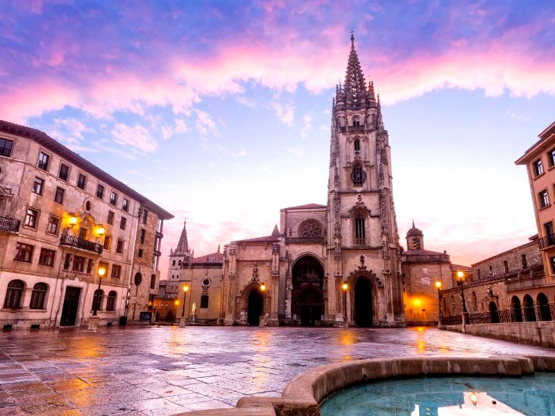 Willkommen in Oviedo, der Hauptstadt Asturiens. Die Stadt wird oft als „eine Stadt aus einem Märchen“ bezeichnet – kein Wunder, dass Woody Allen hier Szenen für seinen Film Vicky Cristina Barcelona gedreht hat. Schlendern Sie durch die malerischen Straßen und besuchen Sie die beeindruckende gotische Kathedrale aus dem 15. Jahrhundert sowie die umliegenden Kirchen. Für einen weiten Blick über die Stadt lohnt sich der Aufstieg auf den Monte Naranco. Von hier aus genießen Sie nicht nur ein atemberaubendes Panorama auf Oviedo, sondern auch auf die umliegenden Täler. Am Abend führt Ihr Weg zum Plaza del Fontán, dem wohl lebendigsten Platz der Stadt. Beim Betreten des Platzes erwarten Sie gemütliche Restaurants, traditionelle Ciderhäuser und historische römische Bögen, die an eine alte römische Innenhofanlage erinnern. Auch wenn viele Gebäude im Laufe der Jahre neu aufgebaut wurden, ist das Casa Ramón noch in seinem ursprünglichen Zustand erhalten. Dort sollten Sie unbedingt ein Glas Sidra bestellen, denn die echte Attraktion Oviedos ist die asturische Cider-Tradition – ein Genuss, den Sie sich nicht entgehen lassen sollten.