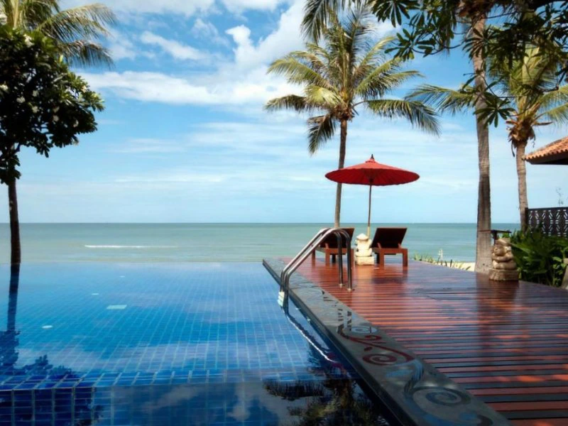 Hua Hin liegt an der Ostküste und ist ein guter Zwischenstopp auf Ihrem Weg in den Süden Thailands. Von Bangkok oder Kanchanaburi fahren Sie etwa drei Stunden mit dem Zug oder privaten Transfer in den Badeort. Sie werden sich in Ihrer Unterkunft, die direkt am Strand liegt, bestimmt wohl fühlen. Die Zimmer des Hotels sind im thailändischen Stil eingerichtet und liegen in einem angelegten Garten, in dem Sie sich entspannen können. Der richtige Ort, um mit einem Getränk und frischem Obst in Urlaubsstimmung zu kommen. Am Ankunftstag wird nicht viel mehr auf dem Programm stehen, als ein Sprung in den Pool oder ein Spaziergang am Strand. Genießen Sie am Abend auf einer Terrasse bei leichter Meeresbrise frischen Fisch oder andere thailändische Spezialitäten.
