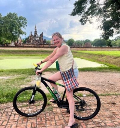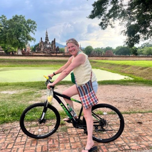 Ihr Frühstück ist frisch und aus lokalen Zutaten zubereitet. Danach steigen Sie aufs Fahrrad und erkunden das ländliche Sukhothai, vorbei an Tempelruinen und Dörfern. Ihr Englisch sprechender Guide hält regelmäßig an und erzählt Ihnen von Buddhismus, Geschichte, Architektur und dem lokalen Leben. Unterwegs erhalten Sie Wasser, Snacks und ein lokales Mittagessen. Am Nachmittag haben Sie Zeit, in den Pool einzutauchen oder weitere Tempel zu erkunden. Im Zentrum von Sukhothai gibt es ausreichend Restaurants für Ihr Abendessen.