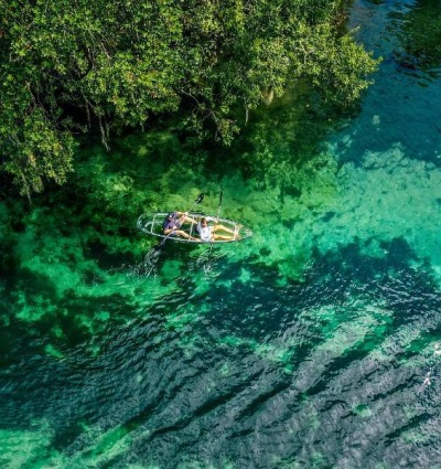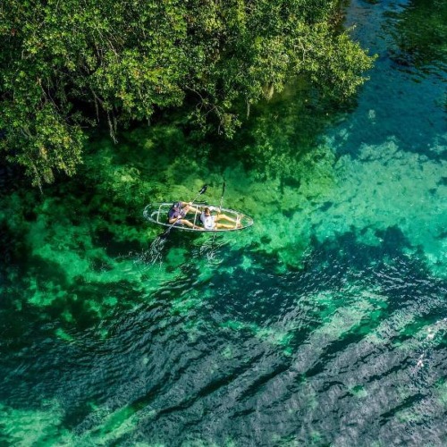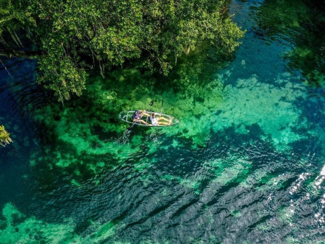 Nur etwa 15 Minuten von Ocala entfernt liegt der Silver Springs State Park, bekannt für seine glasklaren Quellen. Hier steigen Sie in ein Kajak mit transparentem Boden und paddeln entspannt über das klare Wasser.