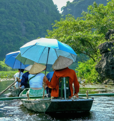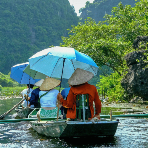 Beliebte Ausflüge führen zur mystischen Parfümpagode oder nach Ninh Binh, dem „trockenen Halong“, wo gewaltige Kalksteinfelsen aus smaragdgrünen Reisfeldern emporragen – ein eindrucksvoller Kontrast zur geschäftigen Stadt.