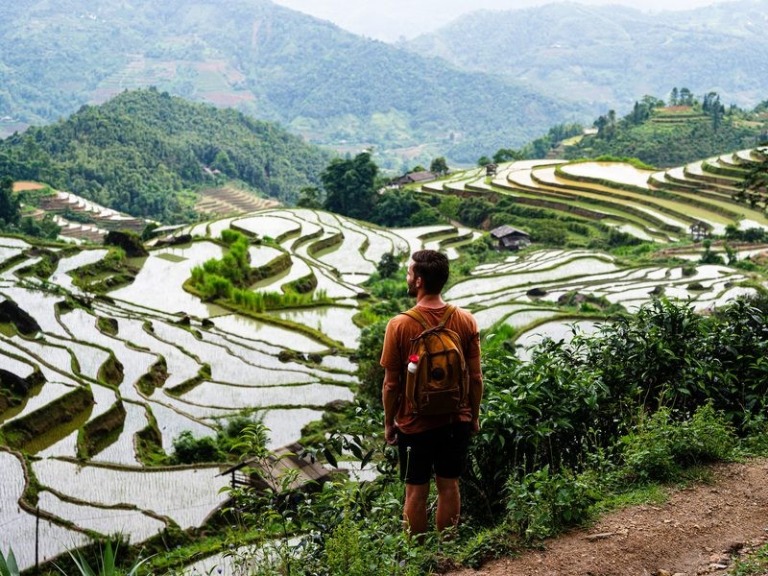 Nach einer ruhigen Nacht mit Vogelgezwitscher starten Sie zu einer etwa fünfstündigen Wanderung durch Reisterrassen, tropische Wälder und ein Red‑Dao‑Dorf. Sie essen bei einer lokalen Familie zu Mittag und erfahren mehr über Kultur, Heilpflanzen und traditionelle Kleidung. Nach der Wanderung können Sie entspannen – bei einer Spa‑Anwendung oder mit einem Buch und Blick auf die grünen Hügel. Die Red Dao haben diese Terrassenlandschaft über Generationen geformt.